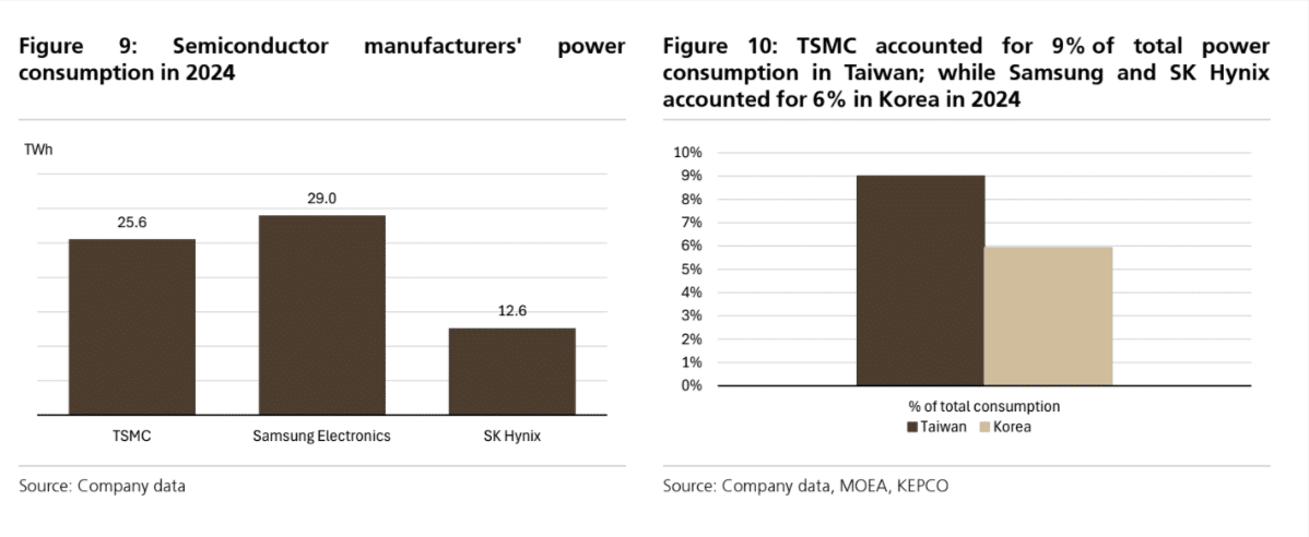 Otro punto fuerte del reporte tiene que ver con la escala. Hace unos años, el consumo energético de una compañía de semiconductores podía verse como una variable corporativa. Hoy ya no. TSMC consumió en 2024 alrededor de 25,6 TWh, Samsung Electronics llegó a 29,0 TWh y SK Hynix a 12,6 TWh. Son cifras lo bastante grandes como para convertir a estas empresas en actores sistémicos dentro de sus propios países.